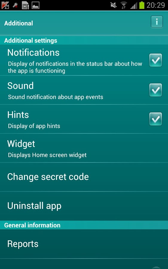 • Device Admin feature prevents unauthorised un-installation – so third-party apps and other users cannot access the Kaspersky Mobile Security application, without the secret code